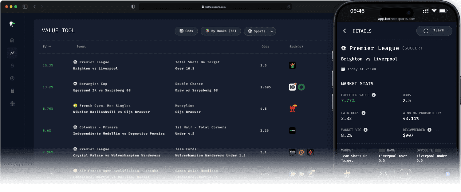 Join the platform trusted by sharp bettors — get daily +EV bets and arbitrage opportunities, plus access to our thriving community.
